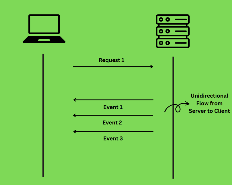 Server-Sent Events (SSE)는 클라이언트가 서버와 지속적인 연결을 설정하고 서버가 클라이언트로 이벤트를 전송하는 방식이다. 클라이언트는 하나의 HTTP 연결을 통해 지속적으로 데이터를 받을 수 있다.