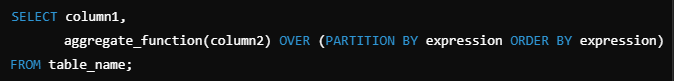 | PARTITION BY | 데이터를 그룹화 (옵션) |