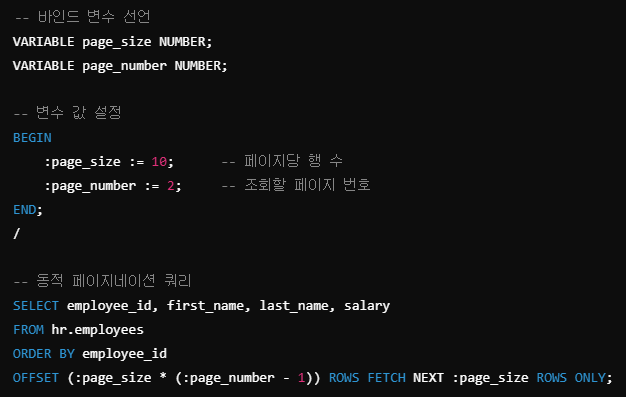 바인드 변수를 사용하여 동적 페이지네이션을 구현하는 방법은 다음과 같다.