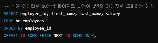 - FETCH NEXT :page_size ROWS ONLY로 한 페이지 분량의 행을 가져온다.
