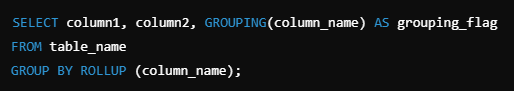 - GROUPING(column_name)은 해당 열이 그룹화에 포함되었는지를 확인한다.