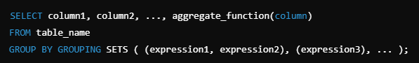 - GROUPING SETS는 그룹화를 원하는 표현식의 집합을 직접 지정할 수 있다.