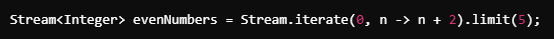 초기값과 함수를 받아 이전 요소를 기반으로 다음 요소를 계산하여 스트림을 생성한다.
