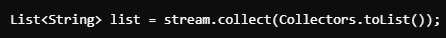 - collect(Collector): 결과를 다양한 형태로 수집.