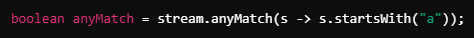 - anyMatch(Predicate): 조건에 맞는 요소가 하나라도 있는지 확인.