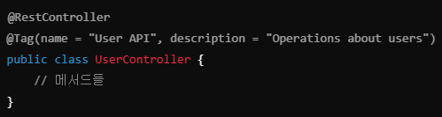 @EnableSwagger2 (또는 OpenAPI 3.x 사용 시 @Tag)