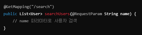 쿼리 파라미터나 폼 데이터를 메서드 파라미터로 바인딩한다.