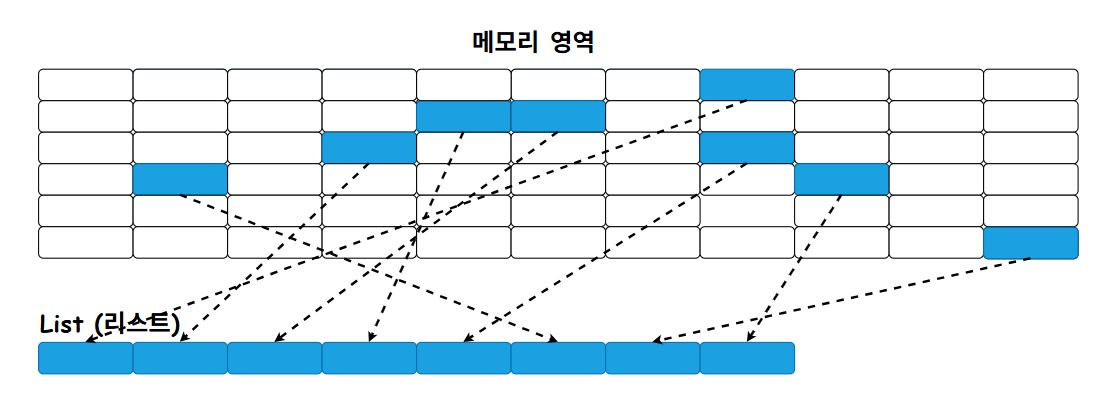 - 비연속적인 메모리 저장: 메모리에 비연속적으로 저장되므로 탐색 속도가 배열보다 느리다.