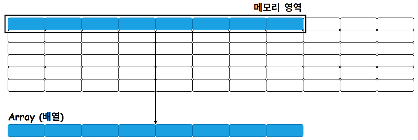 - 고정된 길이: 배열은 초기 선언 시 길이가 고정되며 이후에는 크기를 변경할 수 없다.